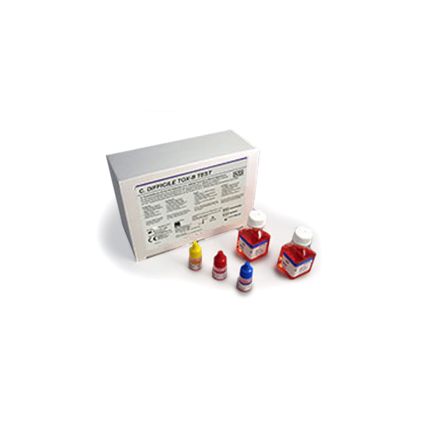 C. DIFFICILE TOX-B TEST wykorzystuje hodowlę tkankową do wykrywania aktywności cytotoksycznej w próbkach kału i potwierdza identyfikację toksyny C. difficile poprzez zastosowanie specyficznej antytoksyny. Zestaw zawiera odczynnik kontrolny toksyny, swoistą antytoksynę, bufor fosforanowy (PBS) oraz rozcieńczalnik.